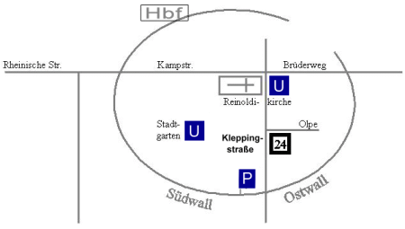 DO-Hbf; U-Bahn bis Stadtgarten (U41, 45, 47 od. 49).